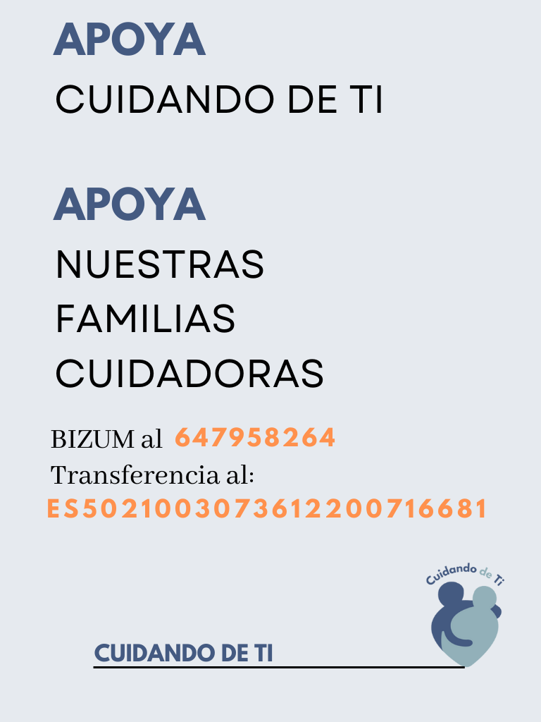 Puedes participar activamente con nuestra Asociación en este proceso de transformación social y contribuir haciendo realidad cientos de proyectos que mejoraran la vida de muchas personas Cuidadoras y la de sus familiares, realizando siempre que quieras una aportación económica por pequeña que sea.